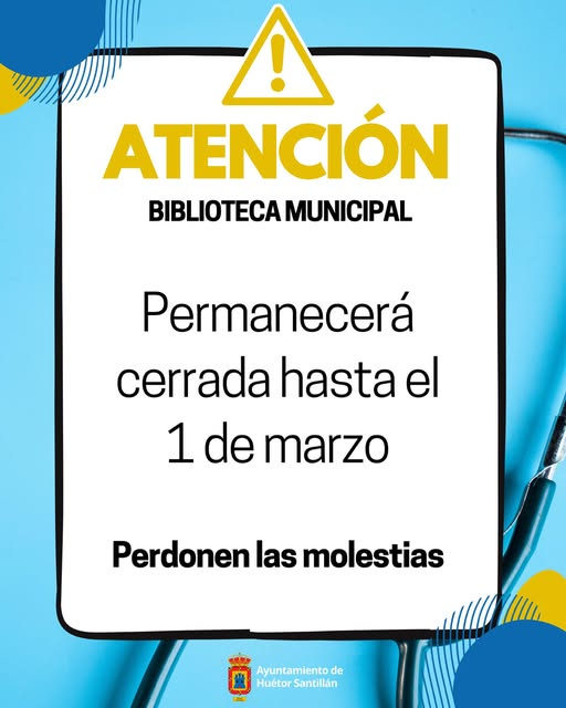 Biblioteca Municipal permanecerá cerrada hasta el 1 de marzo.